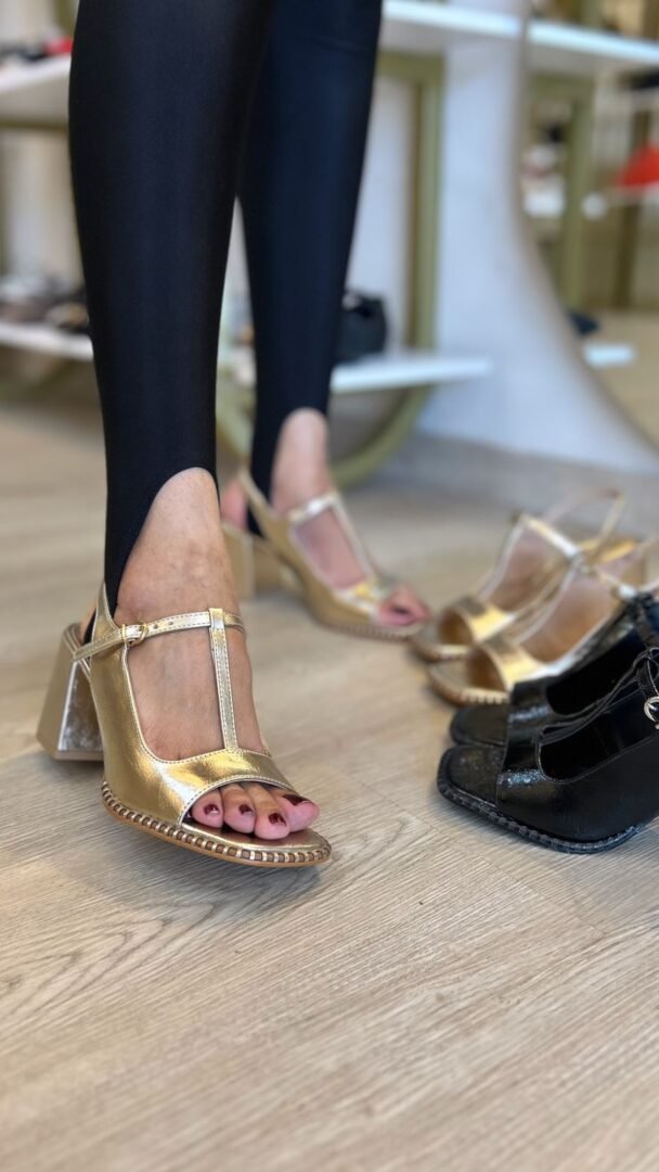 Sandália Salto Bloco Metalic